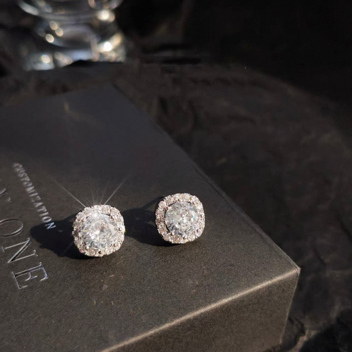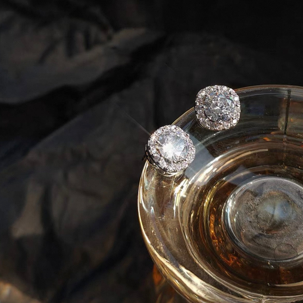 中心にきらめくクリスタルを、繊細な輝きが円を描くように囲んだデザイン。