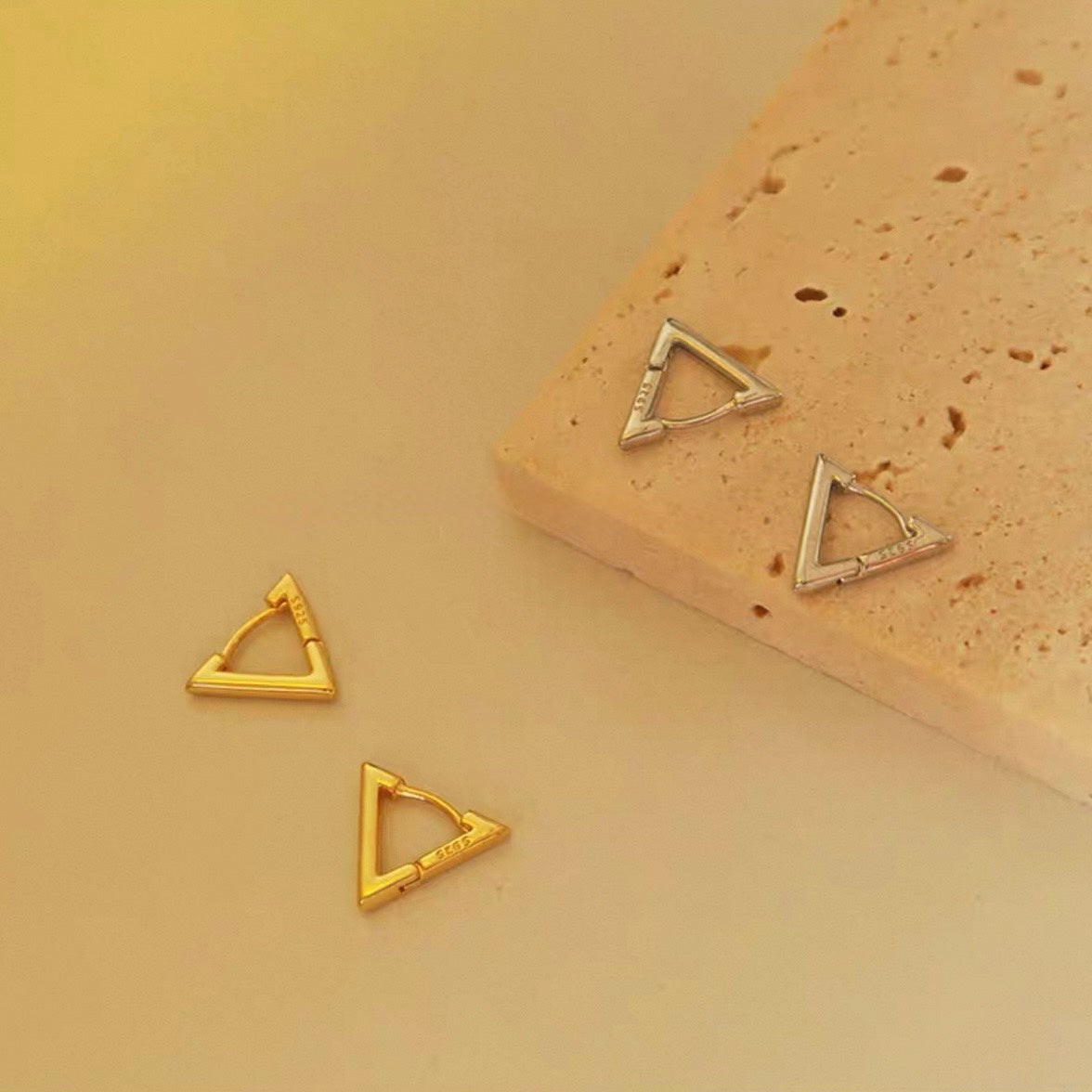 ミニマルな三角フォルムが耳元に静かな個性を添え、甘さを抑えたシャープな印象のピアスです。