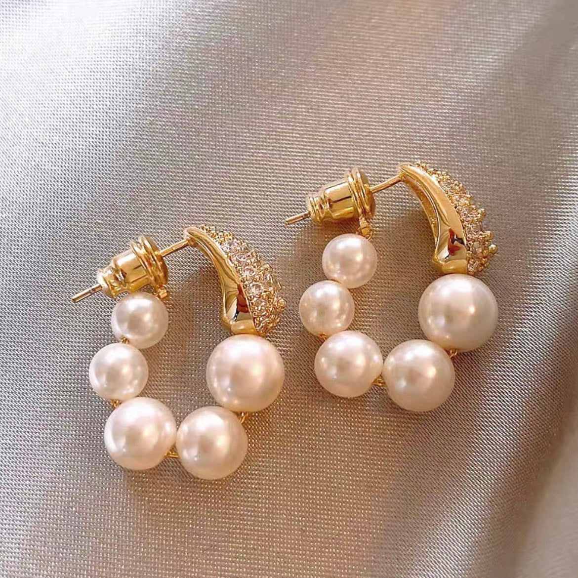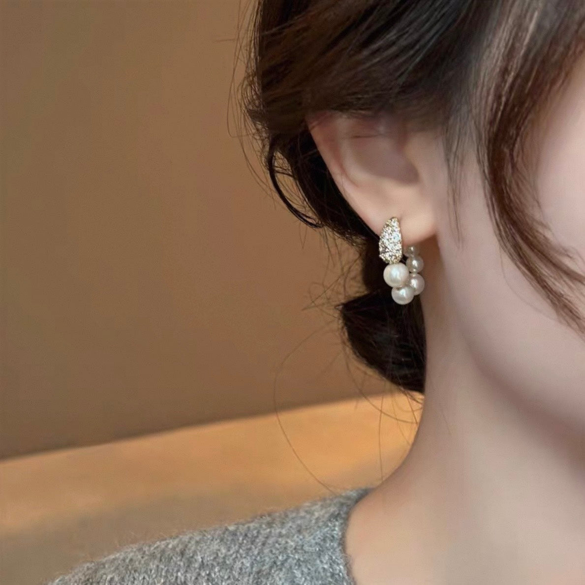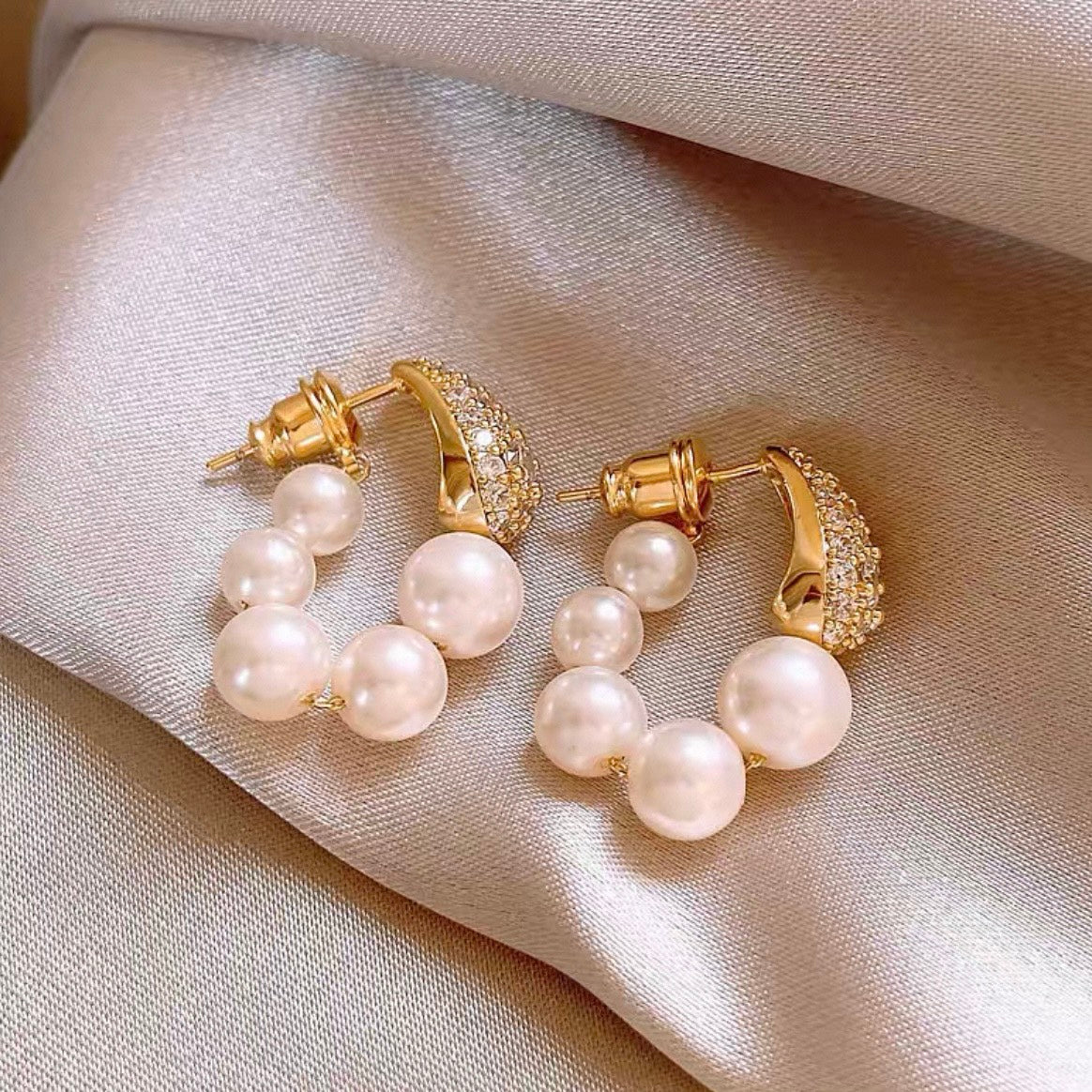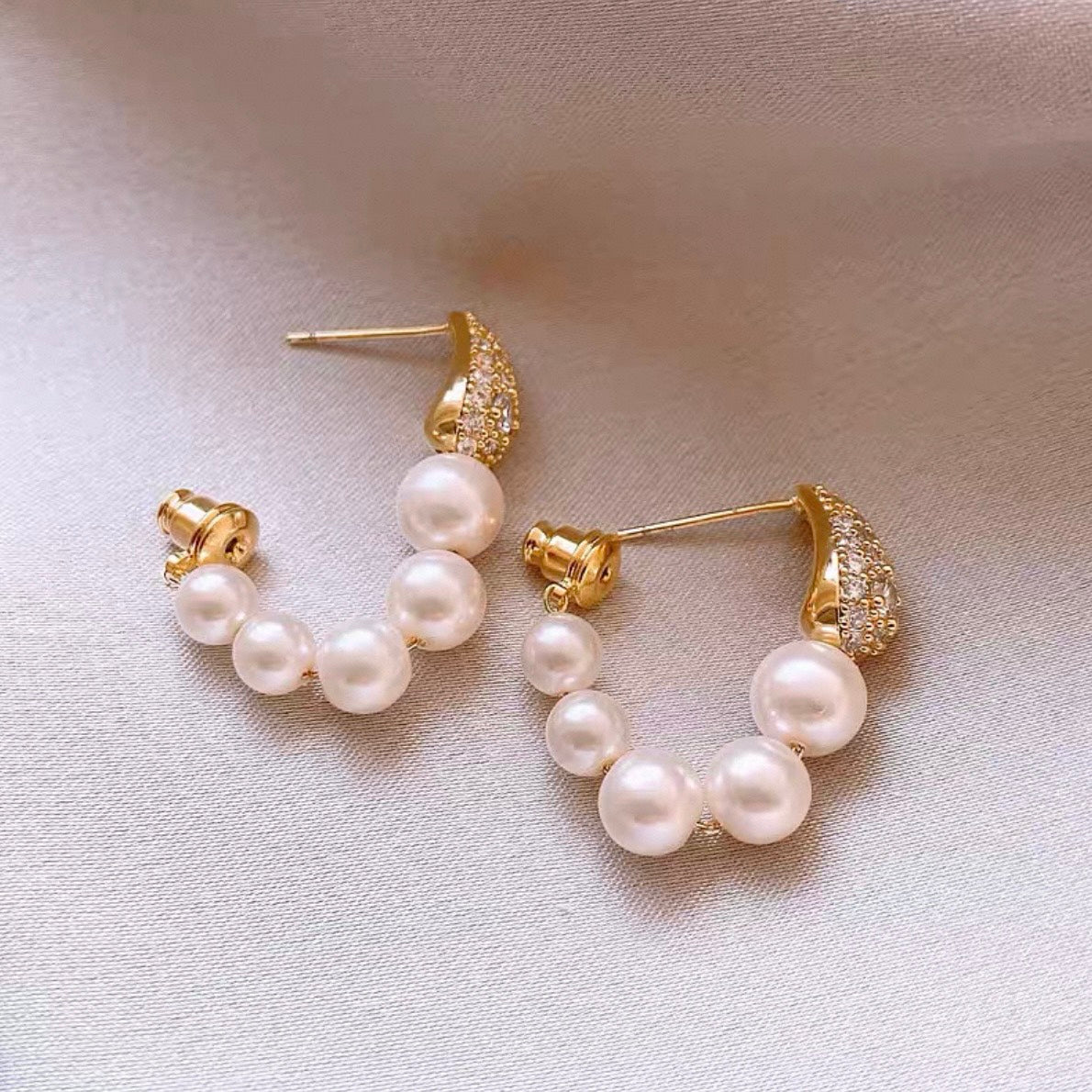 繊細にきらめくビジューと、なめらかな艶をまとったパールを三日月のようなフォルムに仕上げました。